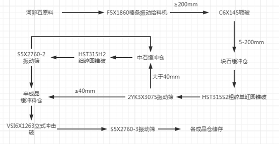 主机设备:PEW颚式破碎机、2台PFW反击破碎机、VSI6X九游老哥J9俱乐部官网