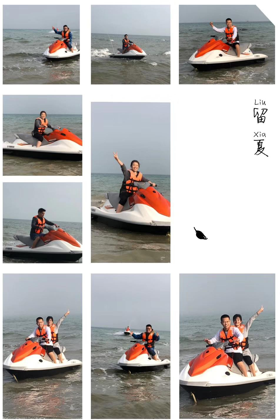 12:00—19:00 自由行。基本就是午休,去海边浪,骑摩托艇(公司租了两辆,1100 元,1 小时),去南湾码头买菜(在岛上的日子都是掌柜免费带我们去买菜)。